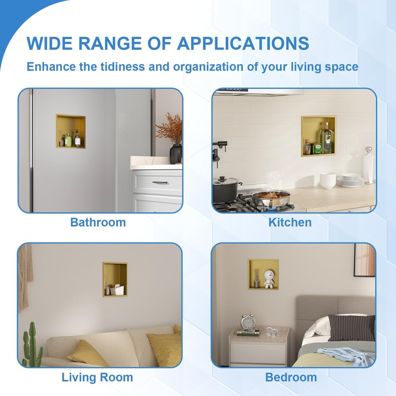 - [Multi-Functional Wall Niche]:Lordear shower niches are not only suitable for bathroom storage, it can also be widely used in study, kitchen, living room, bedroom and other places. The shower niches insert can provide ornamental and practical for your room.