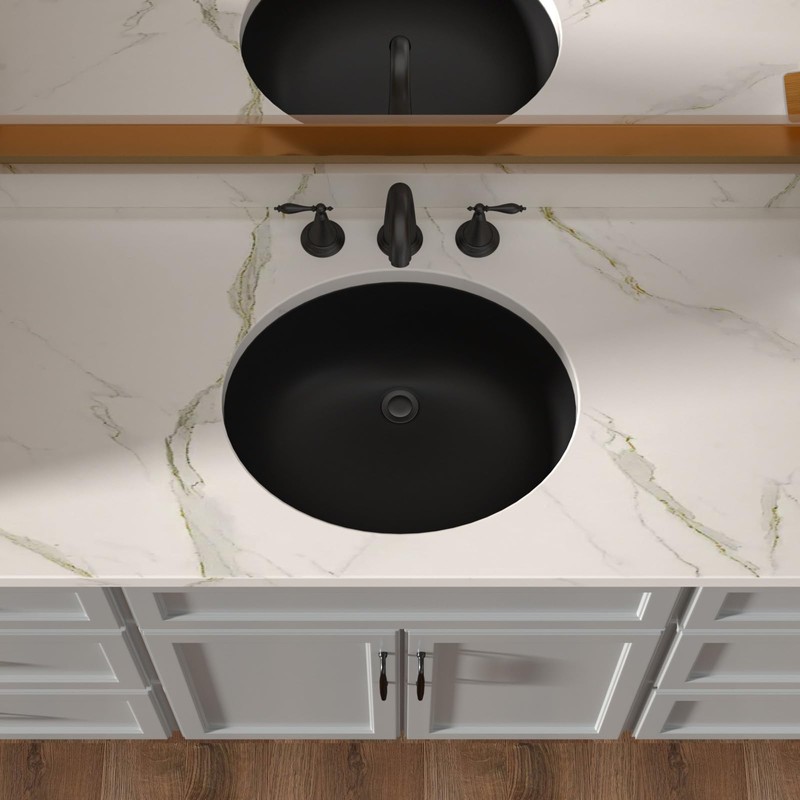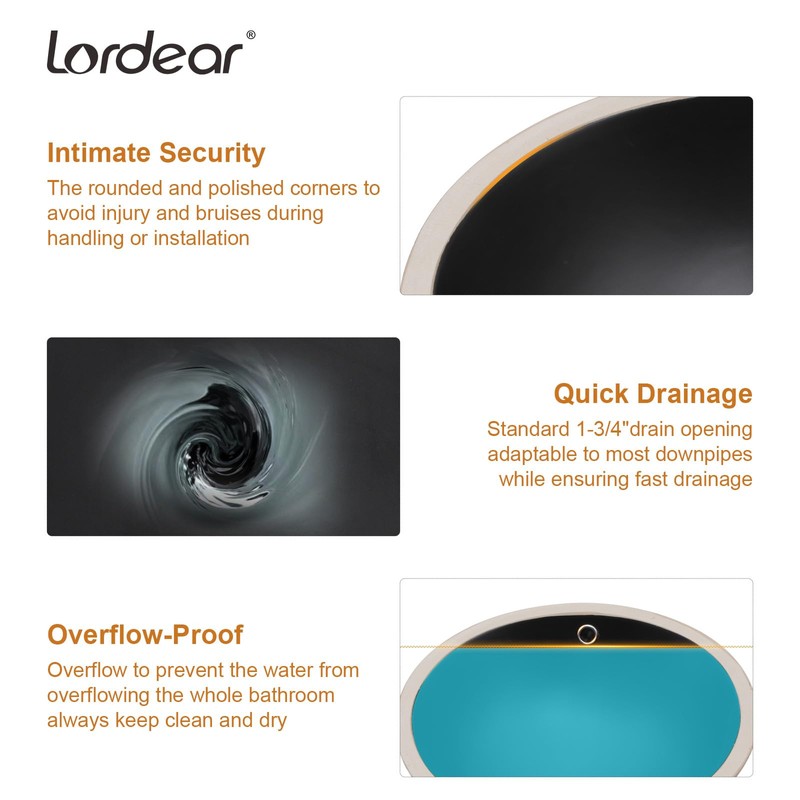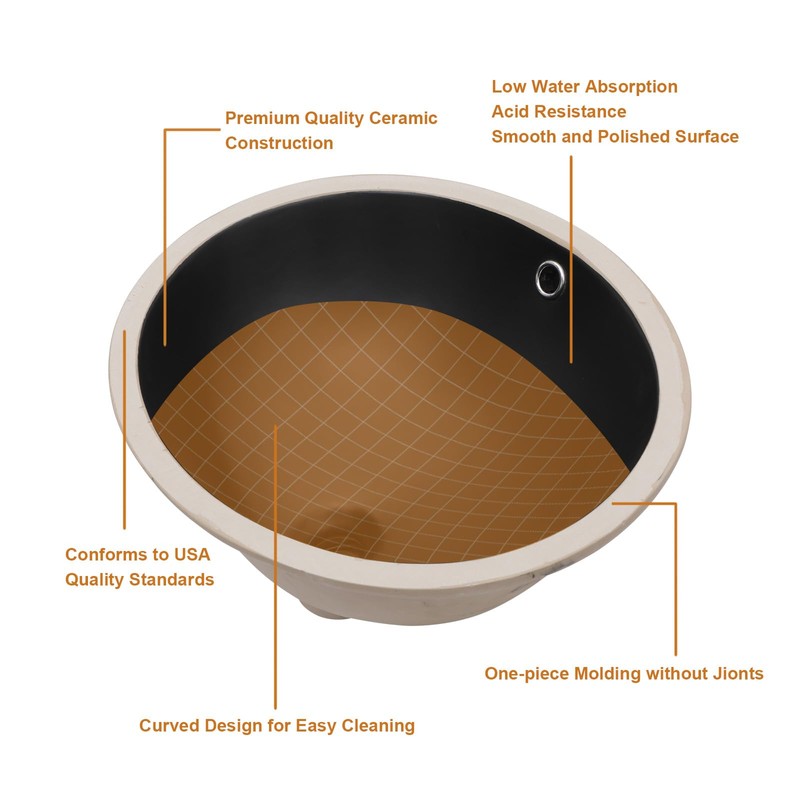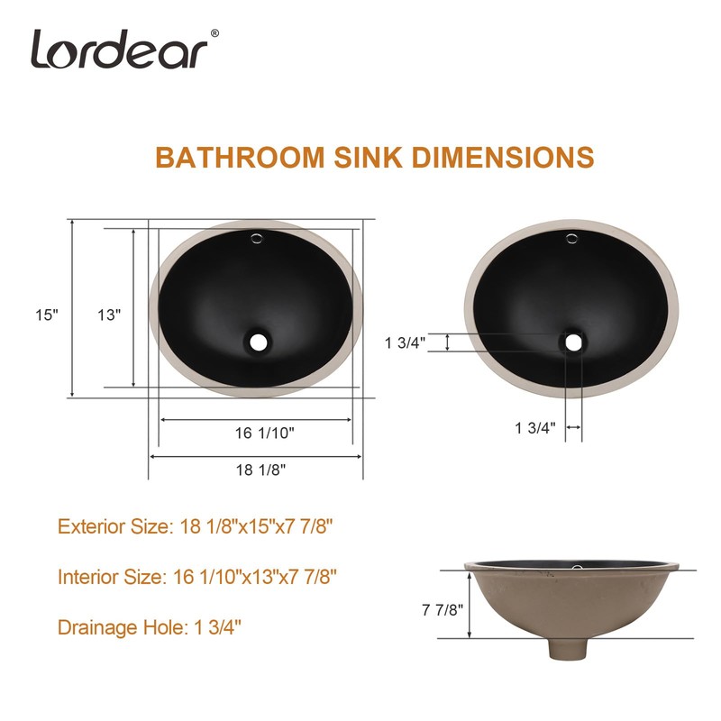 Upgrade your bathroom with the Lordear Undermount Bathroom Sink, a sleek and durable choice for modern vanities. This 18" x 15" round undermount sink is made from high-quality porcelain ceramic, ensuring long-lasting durability and easy maintenance. Designed for a seamless under-counter installation, it provides a clean, modern look. The black finish adds a bold, contemporary touch, while the built-in overflow prevents water buildup. Perfect for a variety of bathroom styles, this undermount vanity sink combines functionality with elegance.