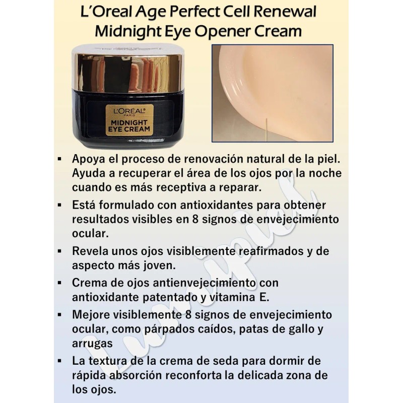 🌟 ⭐ L'oreal Paris Crema Para Contorno De Ojos De Noche Age Perfect Midnight Cream For Face Con Vitamin E Y Antioxidantes 0.5 Oz 14 G La Vitamina E Y El Té Negro Fermentado Revelan Unos Ojos Mas Jovenes. ⭐ 🌟