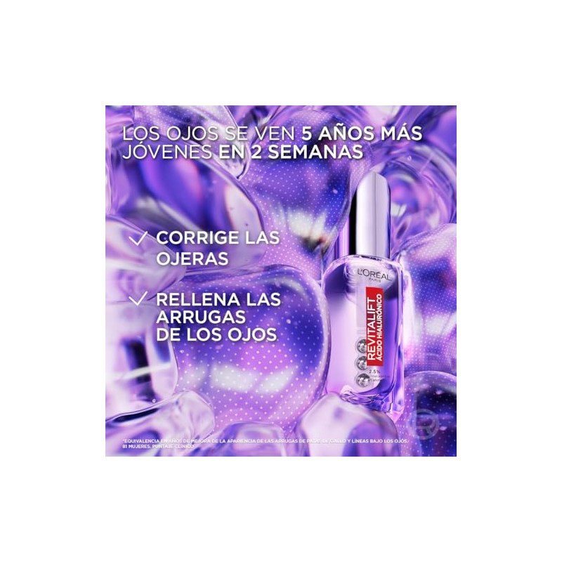 LOreal Paris Revitalift cido Hialurnico Srum Ojos, Hidrata y rellena lneas, Disminuye ojeras y bolsas, 20 ml