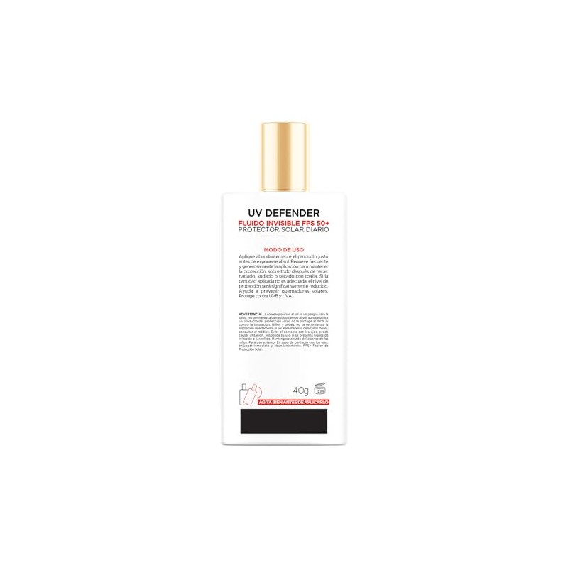 L'Oreal Paris - L'Oreal Paris UV Defender Fluido Invisible Protector Solar Diario FPS50+ con Ácido Hialurónico, Hidrata, previene líneas de expresión y protege de rayos UV, 40ml.