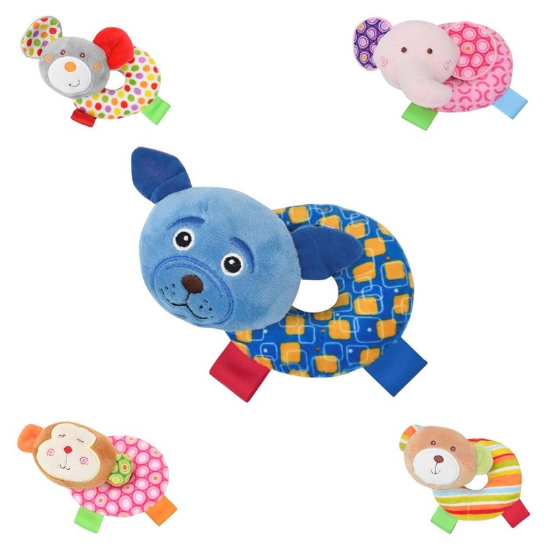 • Plush Animal Rattle and Grasping Toy for Babies from Birth Dog in Blue