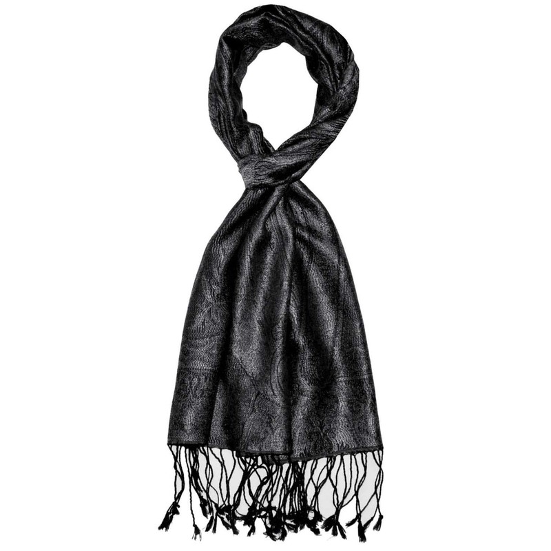 Lorenzo Cana Luxury Silk Scarf for Women - 100% Silk - Ladies’ Woven Scarf, Elegant Paisley Pattern, Tone on Tone - Black