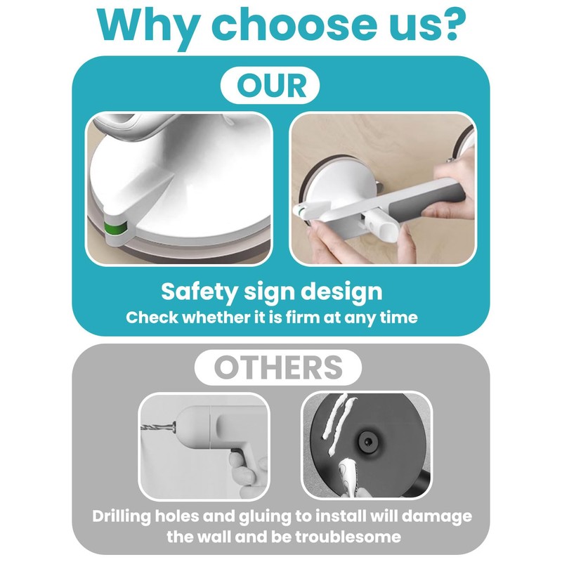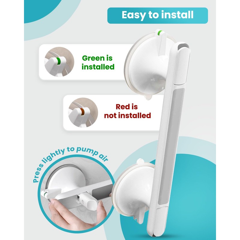 - Easy to install: the bath suction handle only needs to pull down the latches in 5 seconds and the installation is done quickly and effortlessly. Does not damage tiles, porcelain, glass, metals. Made of high-quality PVC and ABS, durable, reusable and waterproof.