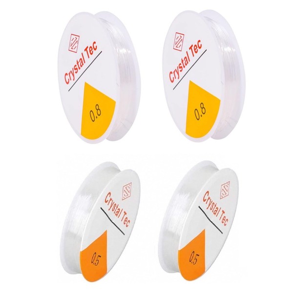 • PACKAGE : 4 rolls clear elastic beading string with 2 diameter size ( 0.5mm, 0.8mm) to meet your different need of making bracelets. 2 rolls Line diameter 0.8mm(approx. 6 m/roll),2rolls Line diameter0.5mm(approx. 13 m/roll)