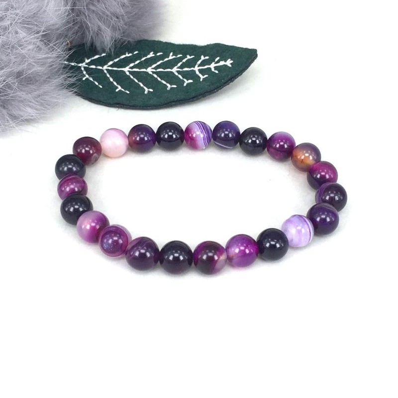 - SIZE: Each bracelet has more than 20 agate beads, Stone diameter : 8mm, Weight: 20 grams. The string is elastic and fits most people's hands,The circumference of the bracelet is about 20cm.