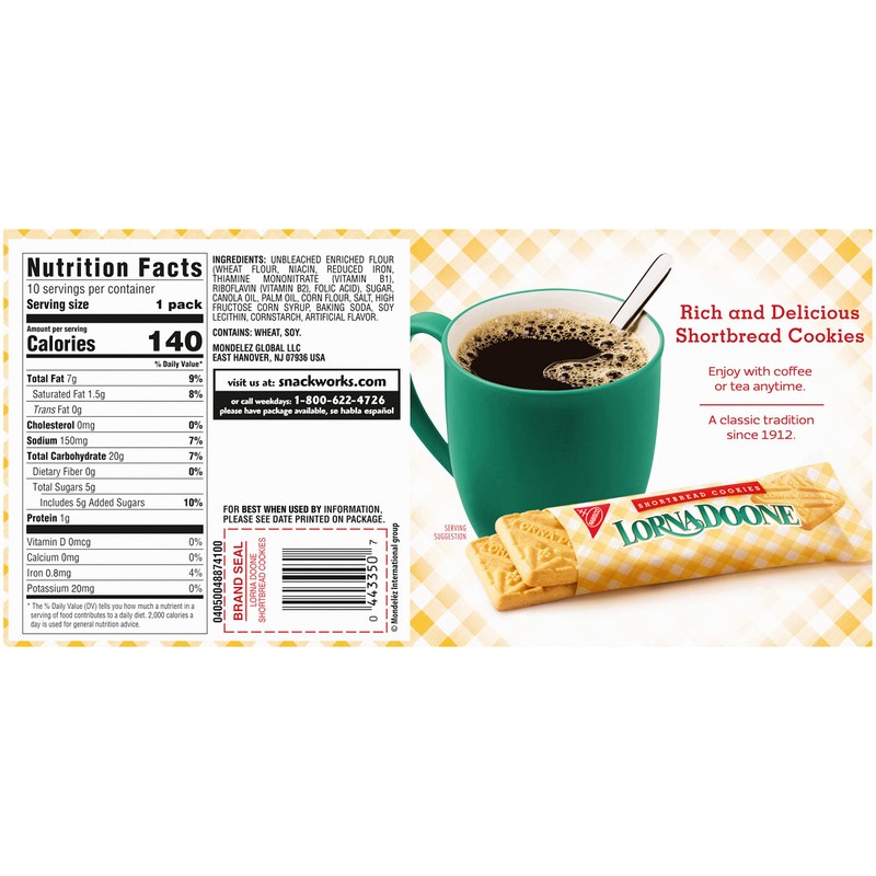 - One box with 10 snack packs (4 cookies per pack) of Lorna Doone Shortbread Cookies