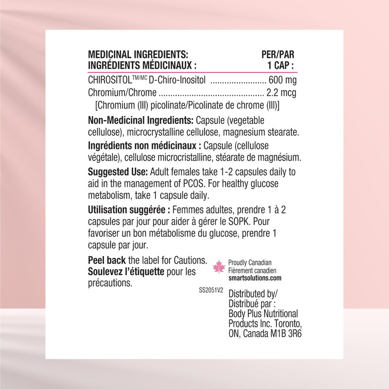 Lorna Vanderhaeghe Smart Solutions Glucosmart Capsules, Promotes a Healthy Glucose Metabolism and Helps Manage Symptoms of PCOS. With 600 mg D-Chiro-Inositol, Gluten-Free, Soy-Free, No Artificial Preservatives or Sweeteners, 60 Count