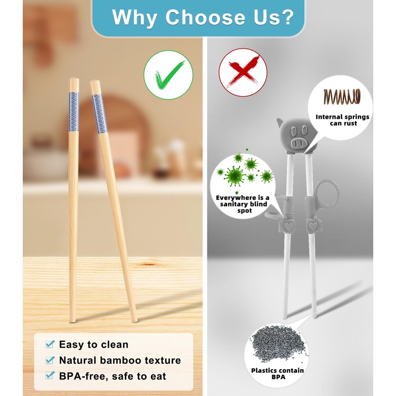 - 【TRAINING CHOPSTICKS FOR ADULTS】Small chop Sticks are suitable for beginners. Children need to give up using auxiliary chopsticks to truly learn how to use them.