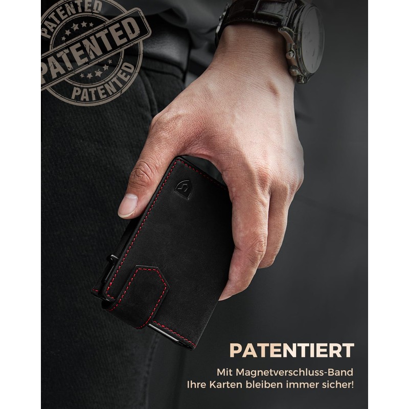 • Patented magnetic buckle: After one year of development, LORZOR presents the patented magnetic closure - all-round protection for your cards. Thanks to ultra-strong magnetic technology, the slim wallet closes quickly in just 1 second. Even with heavy shaking or falling, cards remain securely fixed for maximum comfort and absolute safety