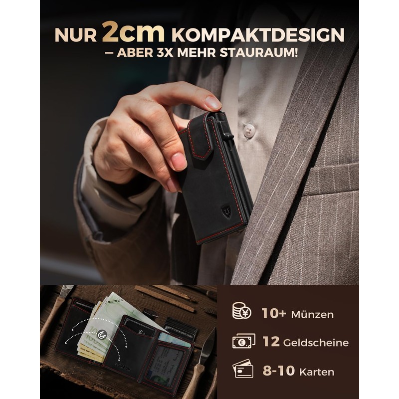 • XXL coin bag. Slim design: are you still looking around in your change? The LORZOR men's wallet in a slim 3-compartment design is only 2 cm thick and offers a generous coin box - comfortably holds 10+ coins (up to 30!). Made from premium full-grain leather, the wallet is soft and thin, so you can finally say goodbye to a bloated wallet. Paying has never been so relaxed
