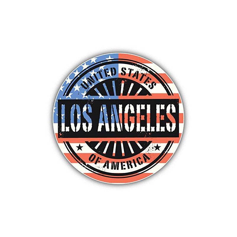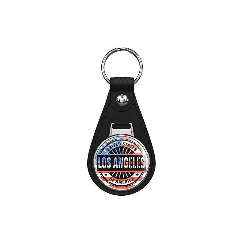 Los Angeles City USA Flag Grunge Stamp Keychain Black Premium Leather Key Chain with Key Ring