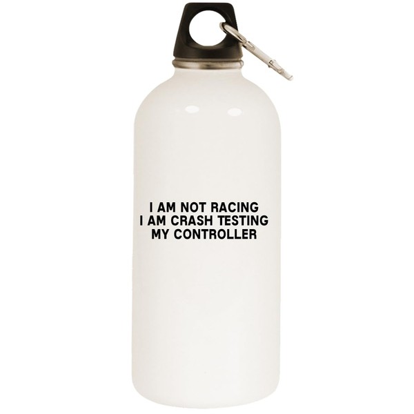 Los Drinkware Hermanos I Am Not Racing I Am Crashing Testing My Controller - White Water Bottle with Carabiner 20oz