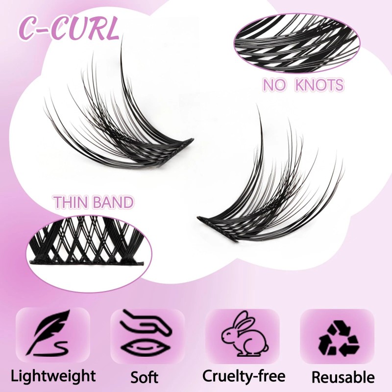 - DIY At Home: Now, you can create different lash extension style by yourself. Full long-lasting eyelash clusters will bring you a natural look and the lash clusters are comfortable and skin-friendly, which will not irritate or damage your natural lashes.