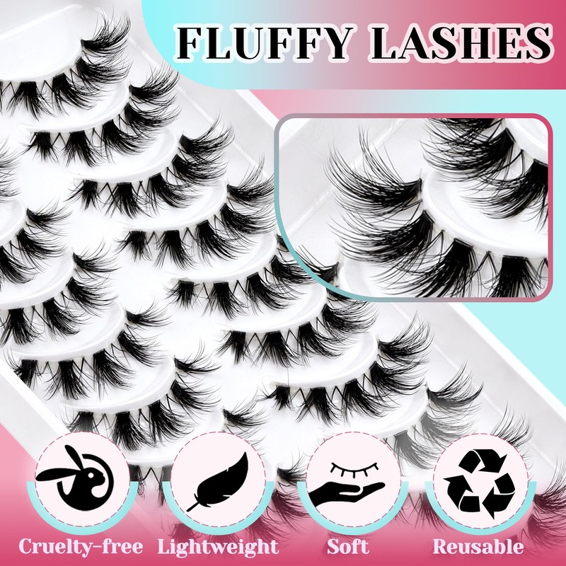 Losha Lashes Wispy Cat Eye Lashes 10 Pairs Natural False Eyelashes with Clear Band 7-15mm Fake Lashes C Curl Lash Strips Lightweight with Soft Design (FT03)