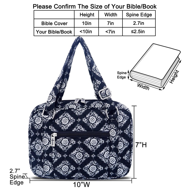 - STYLISH, LIGHTWEIGHT & SIZED RIGHT - The Large Bible Cover is 10 inches wide, 7 inches high, 2.7 inches deep, and weighs 7.8 ounces, it's like a purse style bible carrier