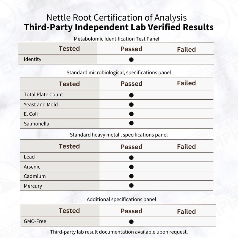 ✔ 10:1 Concentrated Extract – A potent water extract made using 10 lbs of raw nettle root to create 1 lb of concentrated powder for a high-purity product.