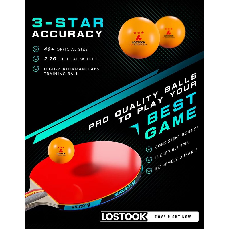 - [Lostook Ping Pong Paddles】Professional 4-rackets + 3 Seamless 3-Star Ping Pong balls Combo.1.8mm high-density sponge and 7-layer poplar wood base with ultra-tight bonding technology.Precision-designed ball (roundness error less than 0.05mm) ensures accurate spinning trajectory. Comes with a waterproof Oxford carry bag with reinforced compartments for equipment protection. Ideal for community events, club training or family fun. Portable design for high quality play anywhere.