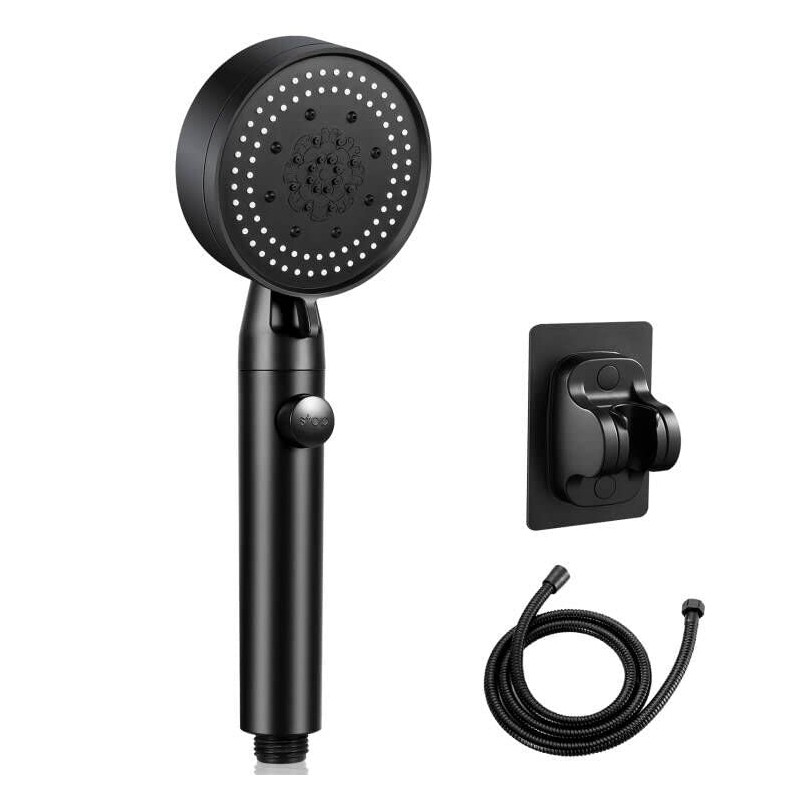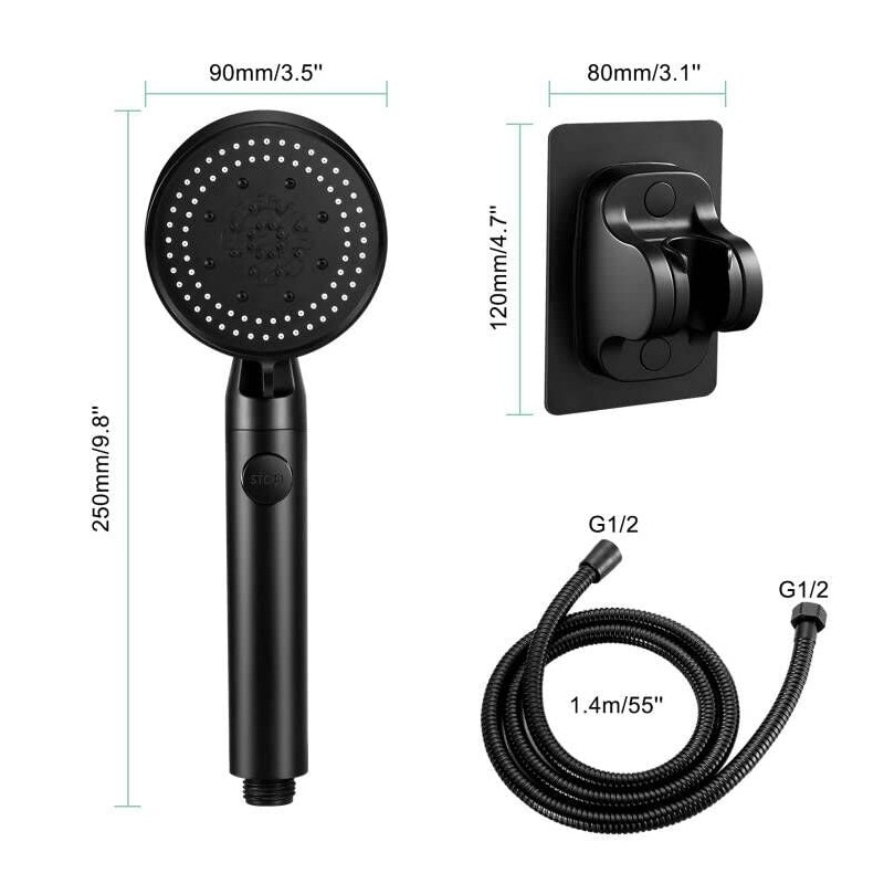 - 🚿【Superior Material】High quality ABS material, plated matte surface, makes it smooth, lightweight, durable, rust-proof and anti-shock, comes with 1* universal G1/2 55'' hose and 1* tools-free installation sticker holder, very strong sturdy and easy to install!!