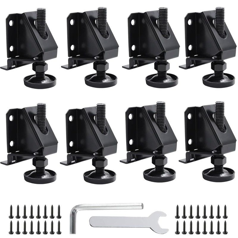 - Easy Installation --- It's easy to install adjustable feet for furniture, each pack included: 8 leveler feet, 32 screws, 1 Allen wrench, 1 nut wrench. You can use the screws to install heavy duty leg levelers in a few minutes with included nut wrench