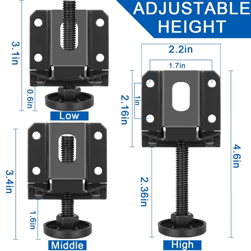 - Wide Applications --- These adjustable furniture leg leveler have a high load-bearing capacity, they can help adjust your furniture to the desired height with ease, perfect for tables, workbenches, cabinets, sofas, beds, chairs, wardrobes, and more