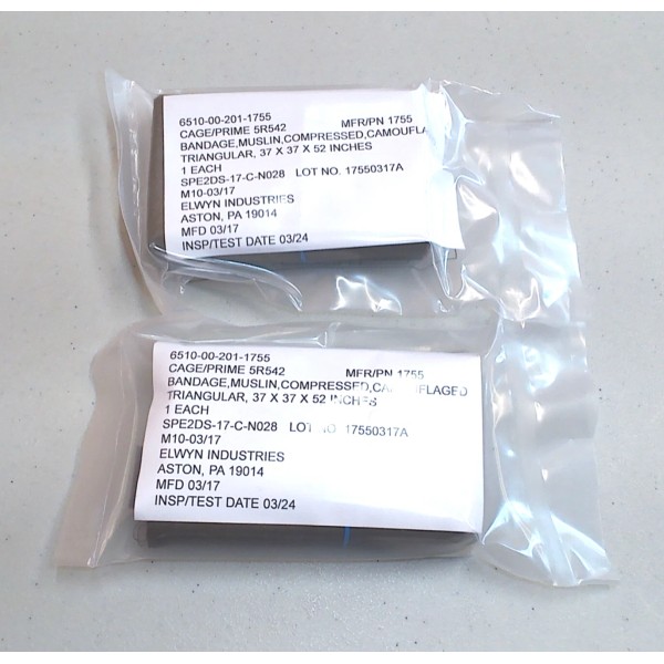Lot of 2 USGI Compressed First Aid Camouflaged Muslin Field Dressing Bandages