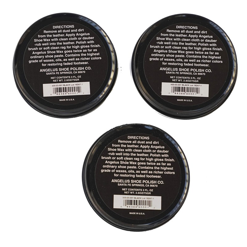 Lot of 3 Shoe Polish Wax Stain Cream 3 oz each Black