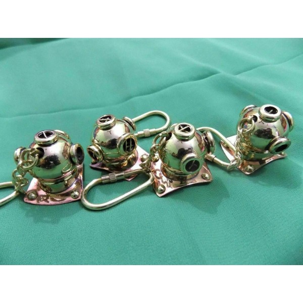 Lot of 4 New Solid Brass Divers Helmet Keychain Nautical Maritime Diving Gifts