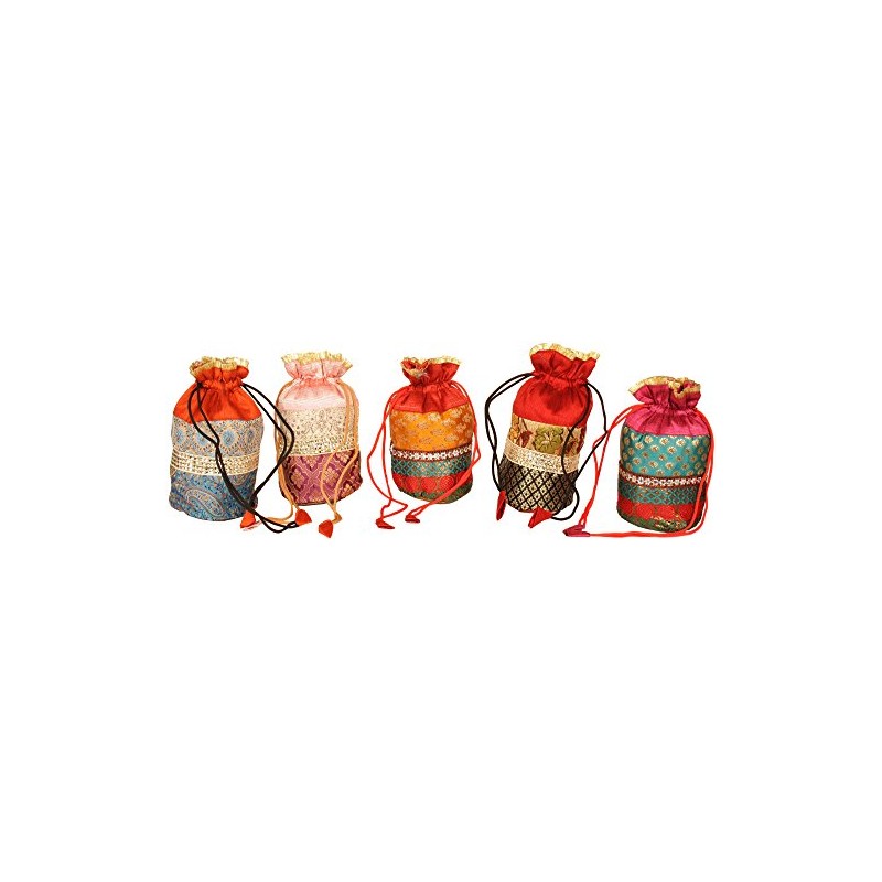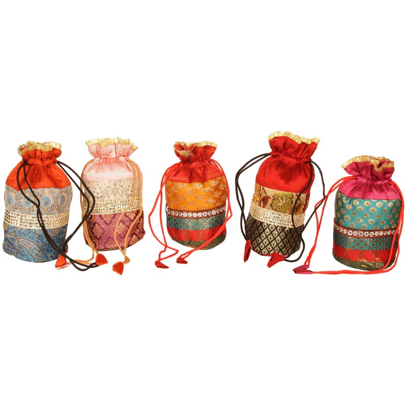 Lot Of Five Drawstring Potli Bags with Brocade Weave – Art Silk
