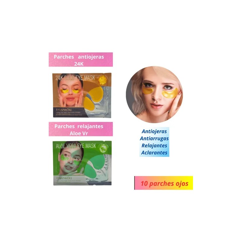 Para los parches de ojeras, colocar directamente sobre la zona deseada y dejar actuar 10–15 minutos.