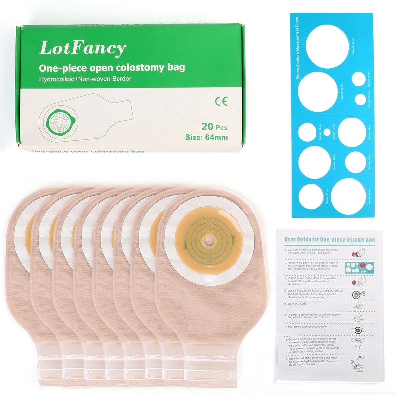 LotFancy combines the skin barrier and the collection pouch into one simple, easy-to-manage system, providing great simplicity. The colostomy pouch is easy to apply with the attached Hook-and-Loop Fasteners providing security you can feel as the plastic fasteners lock into place, easy to empty and irrigate.