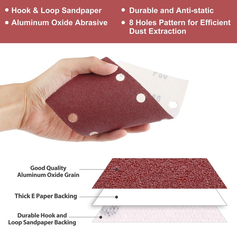 - Sanding paper: eccentric sandpaper set for cordless multi-function sanders of 93 x 185 mm 8 holes, rectangle, for sanding discs with Velcro to give you more choices if needed.