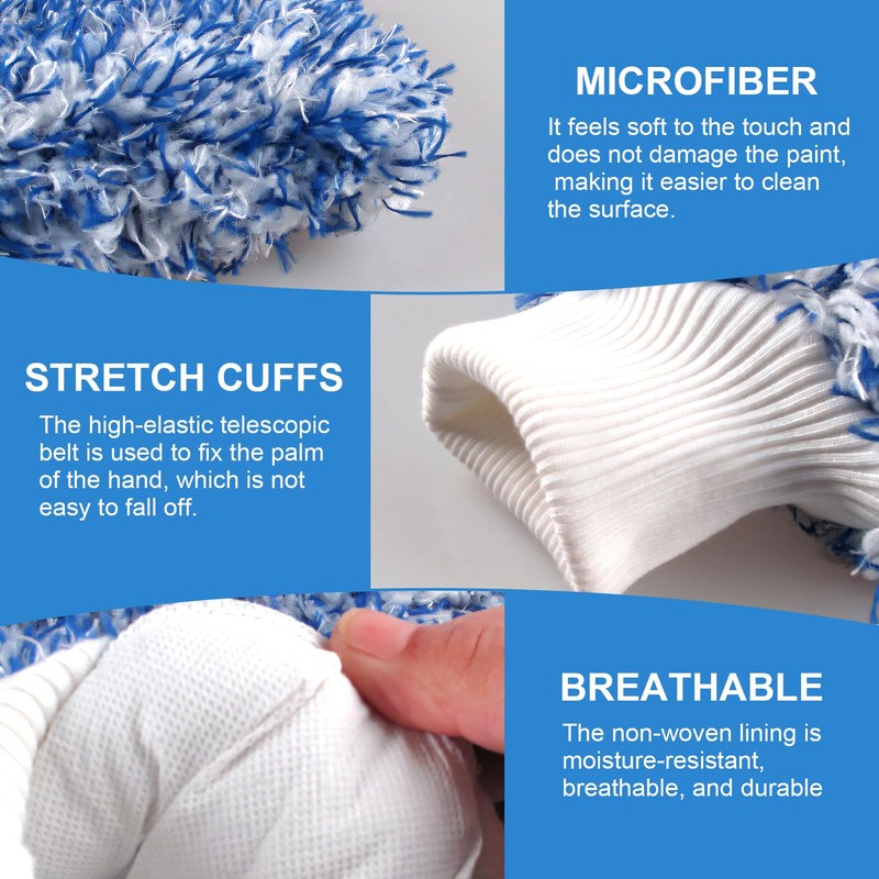 - 【Colour-Coded Versatility】Red/white and blue/white mitts help segregate tasks – use one for wheels/undercarriage and the other for delicate paintwork. Safe on glass, trim, and alloy wheels, plus doubles as a household cleaning glove for kitchens or bathrooms.