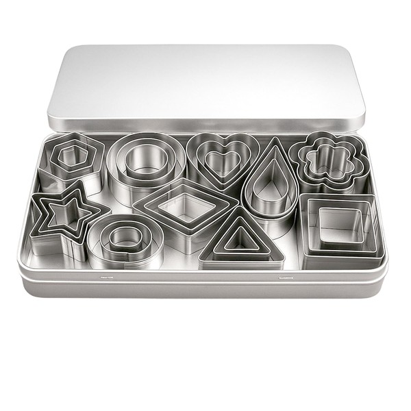 Includes a tiered storage tin designed specifically for the 30-piece set. Keep cutters neatly layered and tangle-free between uses. While dishwasher-safe, hand washing is recommended for extended longevity. The compact case prevents loss and simplifies workspace organization.