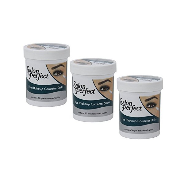 (Lots of 3) Salon Perfect Eye Makeup Corrector Sticks Oil Free, Fragrance Free 100% Cotton Swabs Contains 50 Pre-Moistened Swabs Made in U.S.A