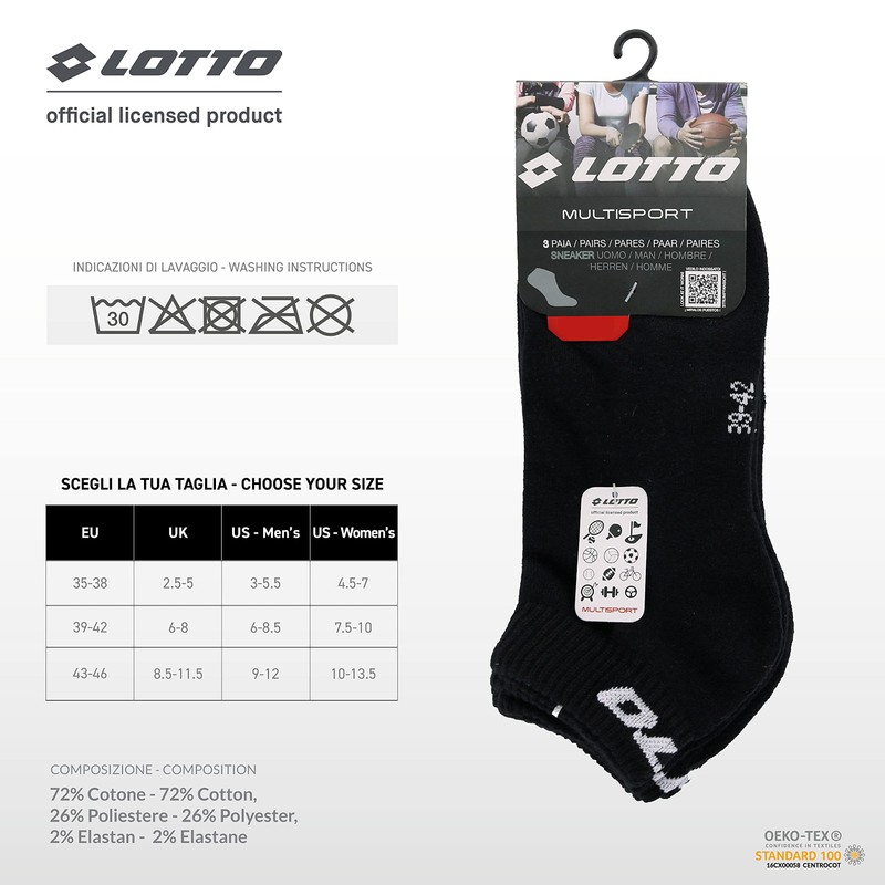 Lotto, 12 Pairs of Unisex Technical Socks Made of Soft Cotton with Micro Sponge Sole, Designed for Running, Gym, Fitness, Pilates, Oeko-Tex Certified, Black, EU 43-46 / UK 9-11, black