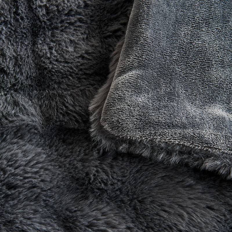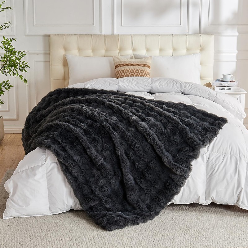 Lotus Karen Faux Fur Blanket Dark Gray Twin Size - Big Bubble Rabbit Fluff Blanket for Couch, Small Fluffy Fuzzy Cozy Blanket, Thick Furry Plush Shaggy Blankets, 60x80 Inches