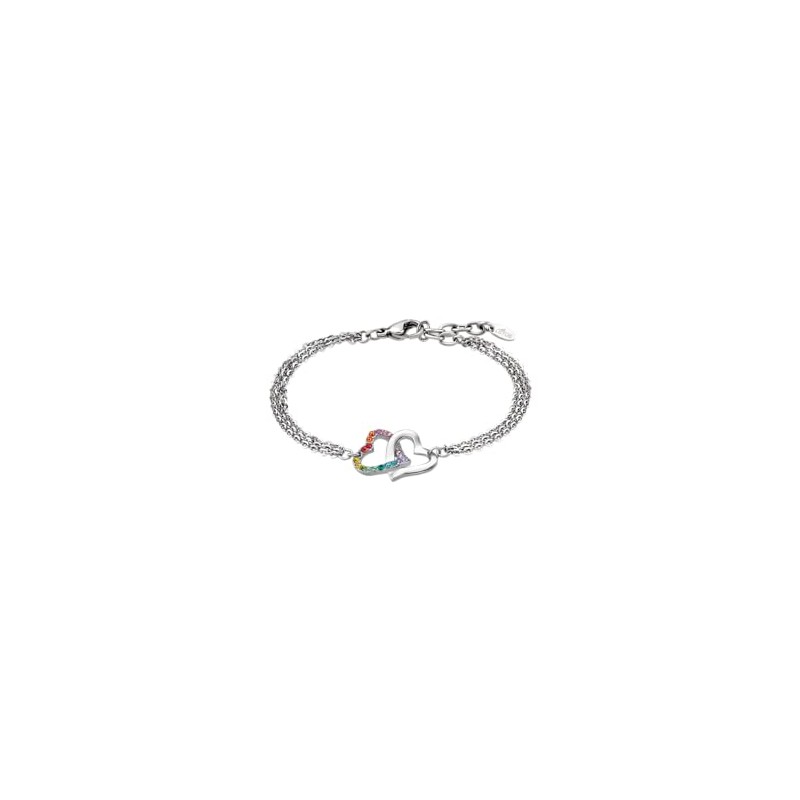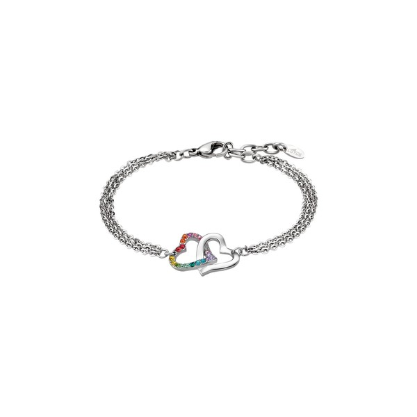 Lotus Steel Bracelet 2 Hearts Colourful Stones Silver No Gemstone, Silver, No Gemstone
