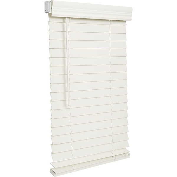 - COLOR COORDINATION & DESIGN: The Soft White hue of this faux wood blind imparts a cozy and welcoming ambiance to your living space. To ensure the ideal trim pairing, refer to the item description and product imagery. The suggested trim match leans towards an Antique White shade. Featuring 2-inch smooth faux wood slats and a sturdy steel metal headrail, this blind is a timeless addition to your home, promising lasting elegance.