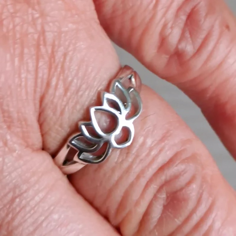 Lotusblütenring, 925 Sterling Silber Lotusring, handgemachter Lotusblütenschmuck, zierliches süßes Geschenk für ihre Mutter, Symbol der Reinheit (66 (21.0))