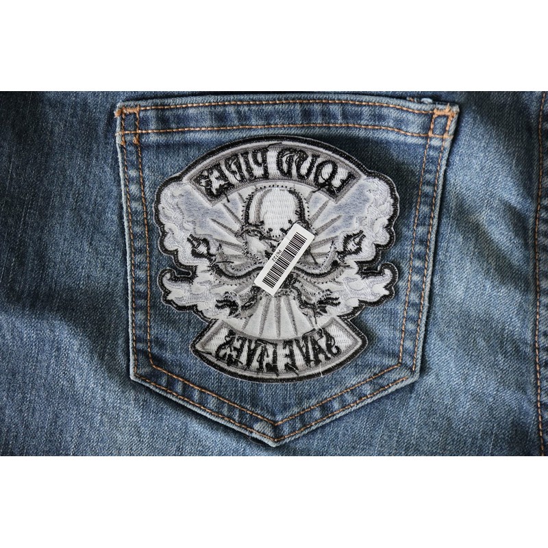 Loud Pipes Save Lives Skull and Pipes Patch, Biker Skull Patches