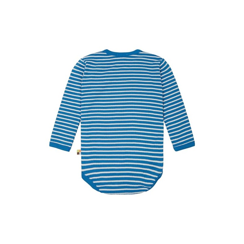 loud + proud Wrap Bodysuit Long Sleeve Striped Organic Cotton GOTS Certified, azure