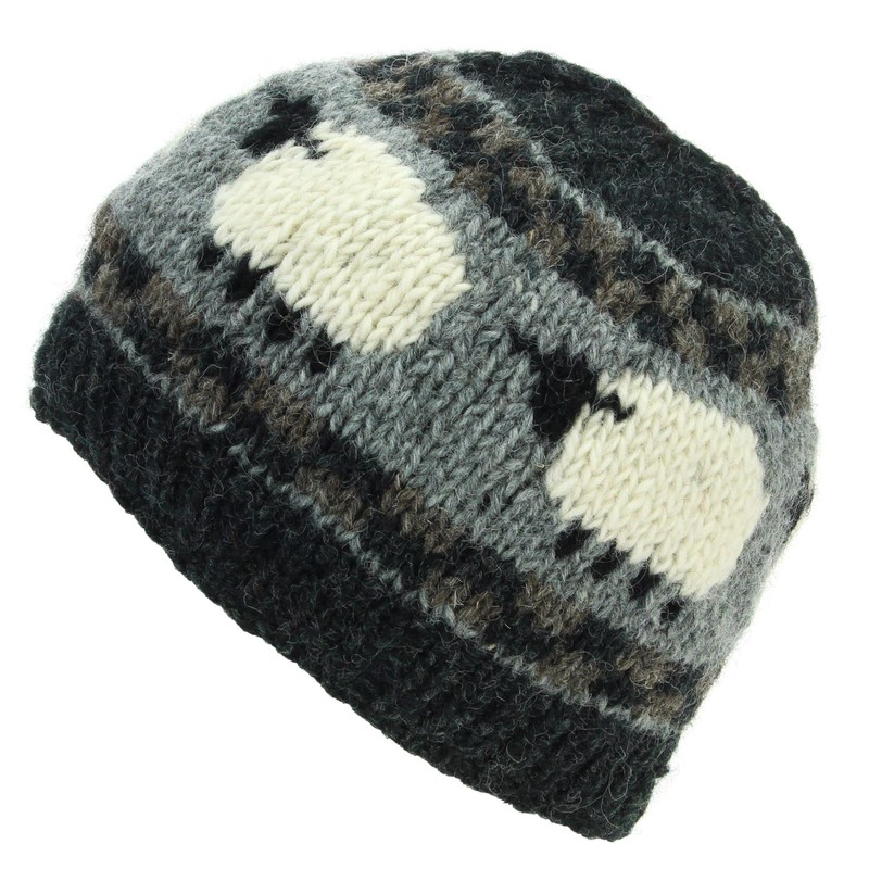 LOUDelephant Hand Knitted Wool Beanie Hat - Sheep Charcoal Grey