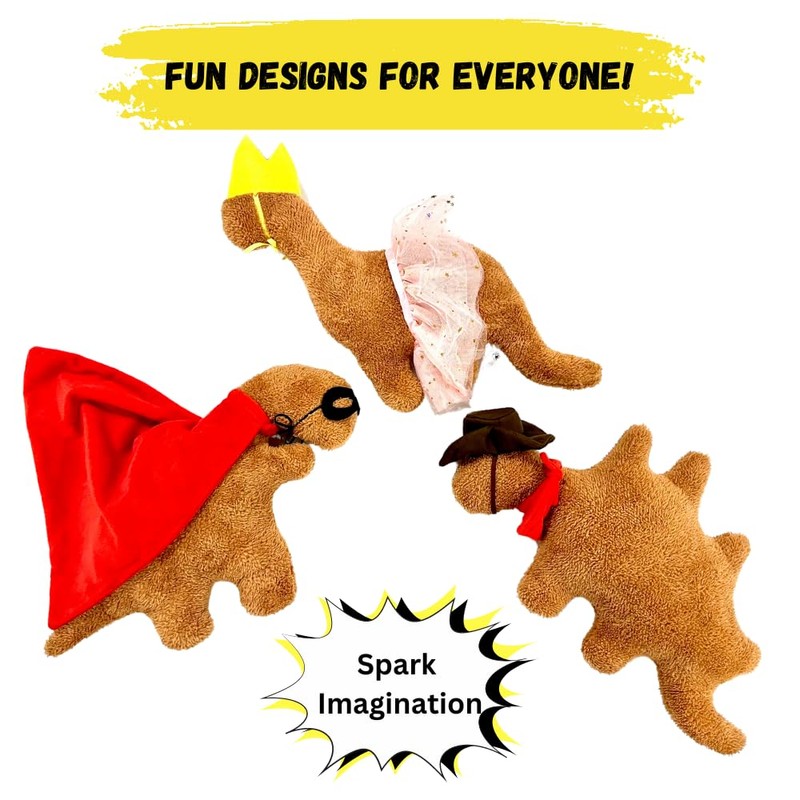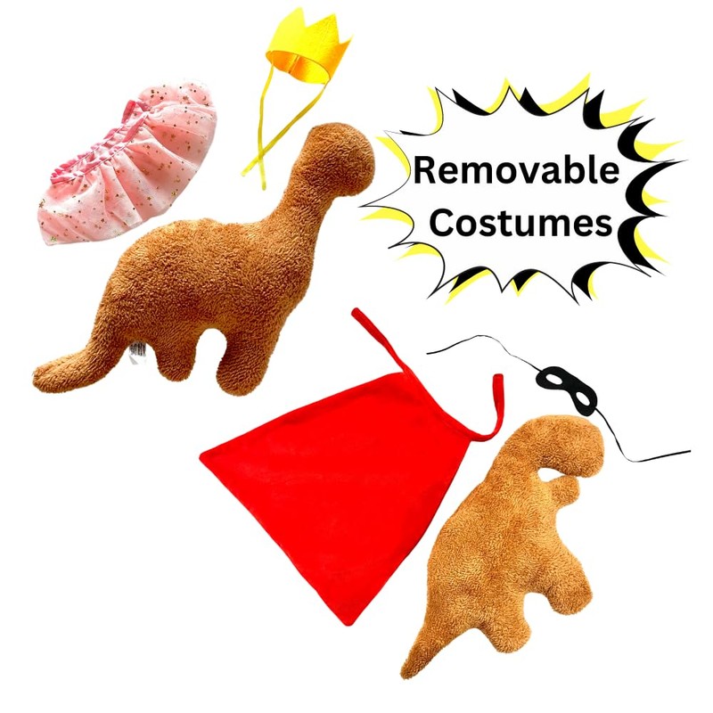 - Customizable Fun: Each dino nugget shaped dino pillow can be dressed and undressed, providing children with the opportunity to change characters and create new stories. This feature encourages endless imaginative adventures, as kids can mix and match outfits to invent unique scenarios. dinosaur