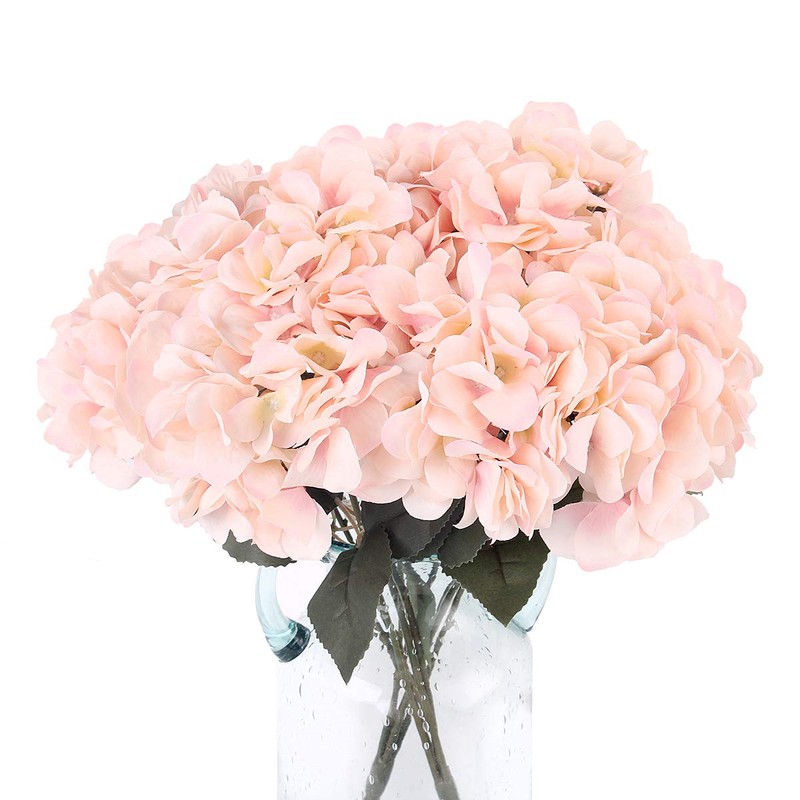Louiesya Artificial Flowers Silk Hydrangea Flowers with 5 Big Heads Fake Flower Bunch Bouquet for Home Wedding Party Decor DIY, Light Pink