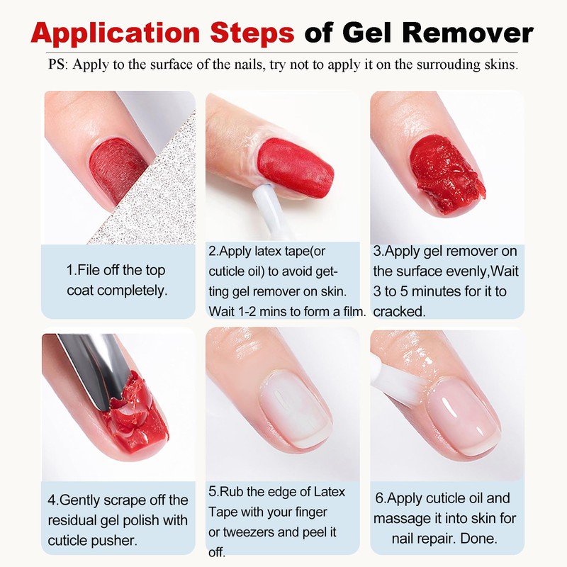 - EASY APPLICATION: Simple process requires minimal effort - just apply, wait, and wipe away the loosened gel polish