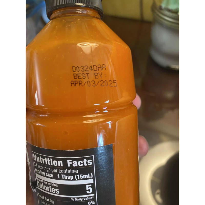 Each 1 Tbsp (15ml) serving has only 5 calories, and with 34 servings per bottle, it's perfect for sharing with family and friends. Check the product packaging label for a full list of ingredients and allergens. Whether you're having a game night or hosting a party, this sauce is sure to be a hit.
