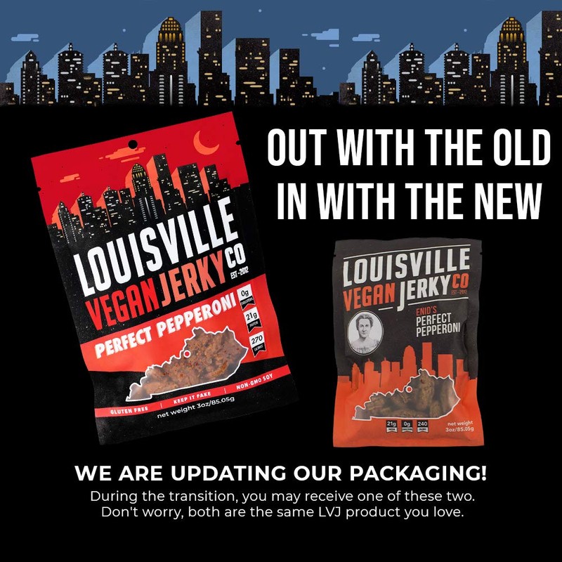 Louisville Vegan Jerky - Perfect Pepperoni, Vegetarian and Vegan Friendly Jerky, 13 Grams of Non-GMO Soy Protein, Gluten-Free Ingredients (Pack of 3, 3 Ounces)