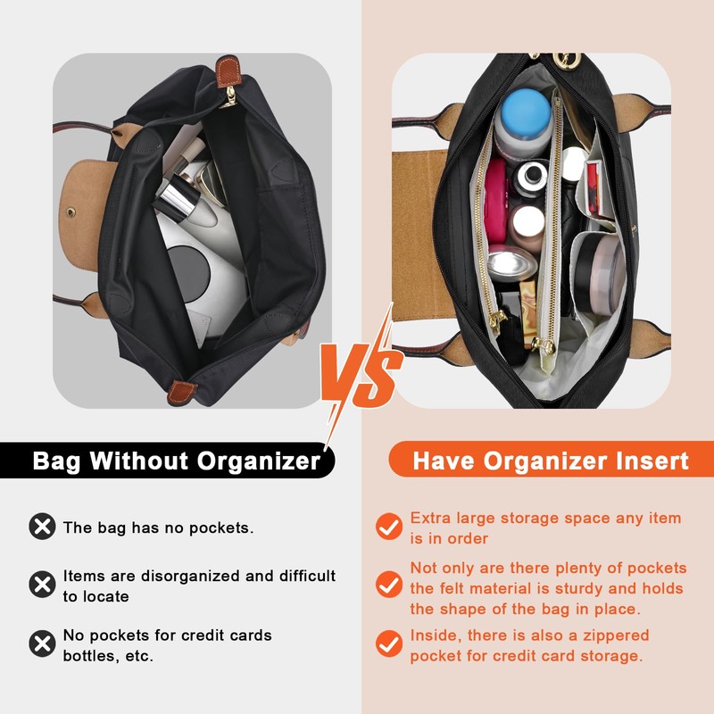 • Organizer Same Shape as the Bag: An seperate Zipper Insert Which Helps Keep Your Valuable and Privacy Items Stored Well, And All Your Things Could Be Easy To Find. The Whole Tote Organizer is Also Sturdy Enough to Help Keep Your Bag In Proper Shape,IMPORTANT: This tote organizer is designed for Longchamp bags and does not include the bag, if you have a similar tote, please double check the size to ensure compatibility.