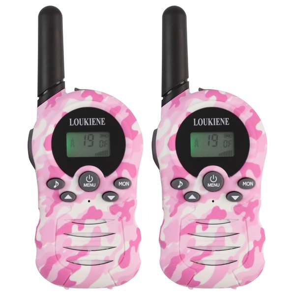 LOUKIENE LOUKIENE Walkie Talkies for Kids 22 Channels 2 Way Radio Walkie-Talkie Toy with Backlit LCD, 3 KMs Range for 3-12 Year Old Boys Girls Outside, Camping, Hiking (1 Pair, Pink)